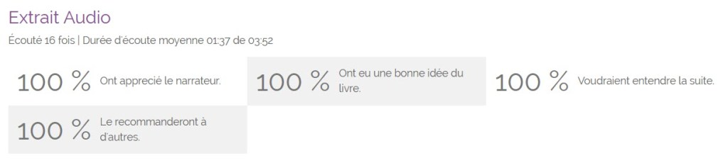 L’éditeur a également ajouté un extrait audio qui est essentiel pour faire découvrir la voix de la narratrice et donner envie d’écouter le livre dans sa totalité.