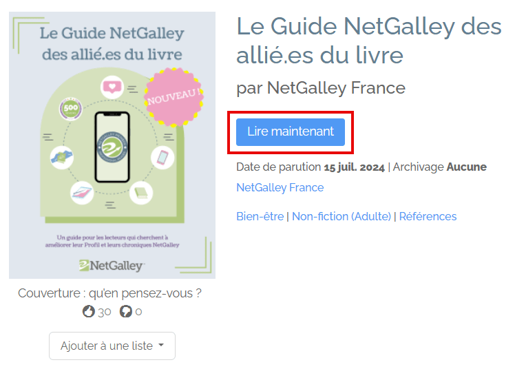 Pour en savoir plus, lisez notre article : Tout ce que vous devez savoir avant de solliciter un livre sur NetGalley — nous faisons un zoom sur la Page d’un titre pour vous montrer les informations importantes à repérer avant de solliciter un livre, mais aussi comment retirer une demande, et bien plus encore.