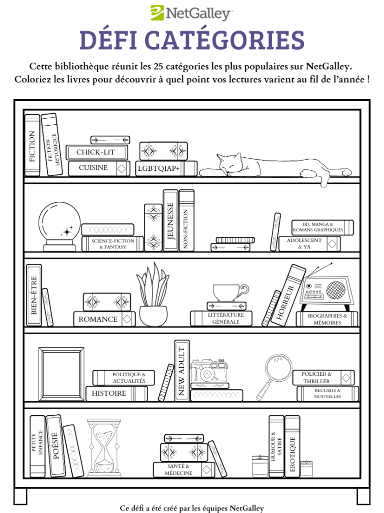 Cette bibliothèque réunit les 25 catégories les plus populaires sur NetGalley.