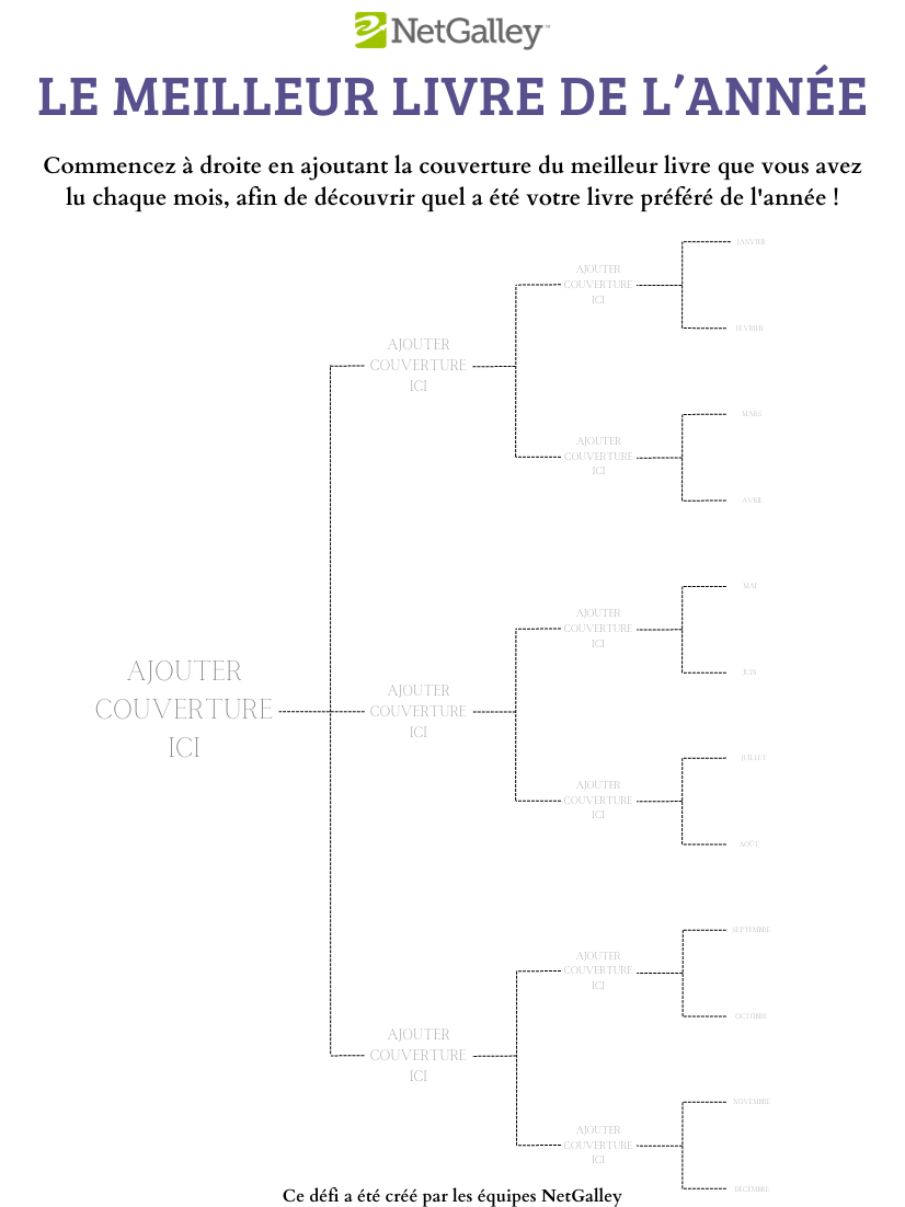 Commencez à droite en ajoutant la couverture du meilleur livre que vous avez lu chaque mois, afin de découvrir quel a été votre livre préféré de l’année !